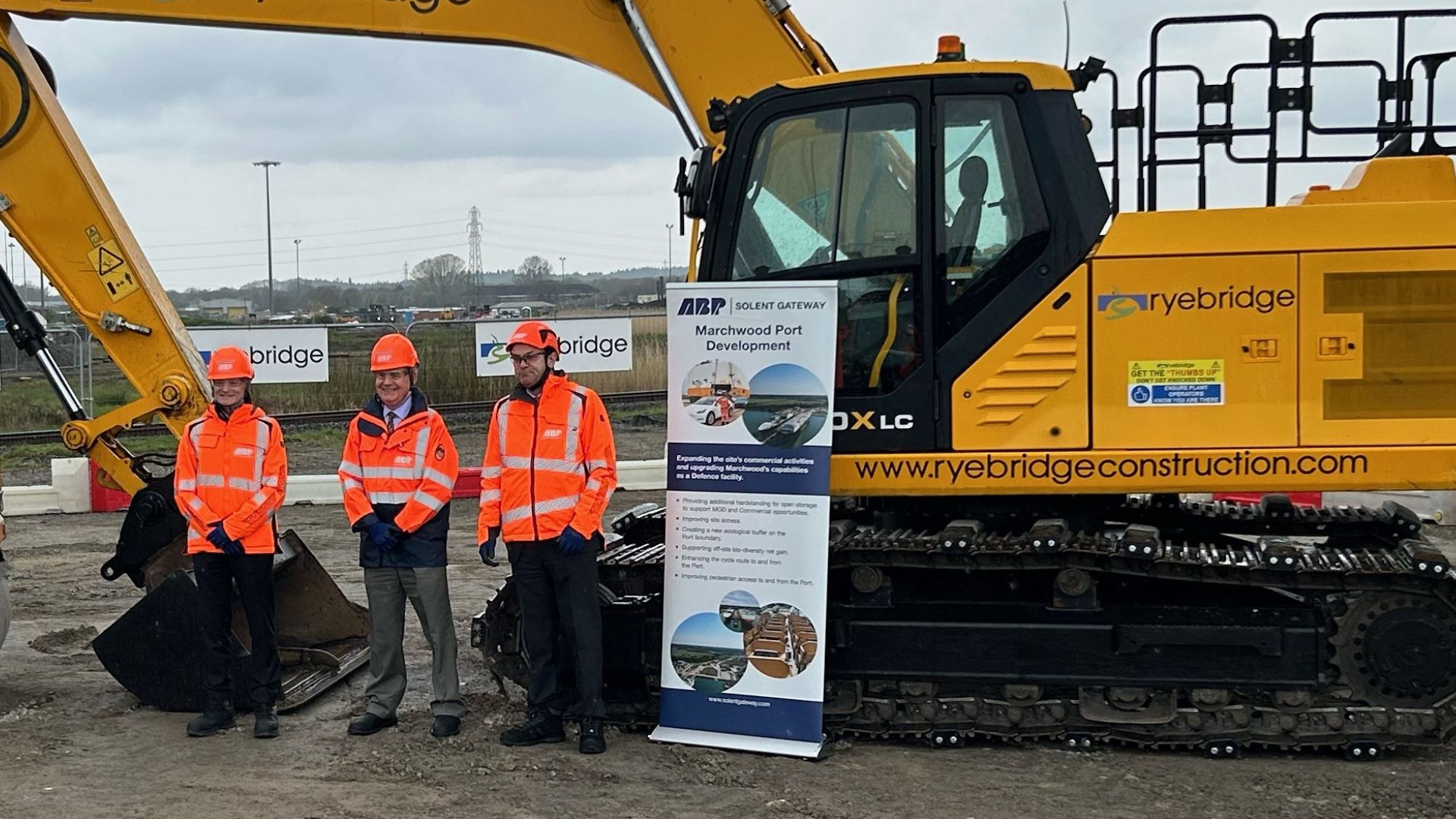 Image from groundbreaking event March 2024, Richard Parkinson, Port Director, ABP Solent Gateway, Julian Lewis MP, Alastair Welsh, Regional Director, ABP